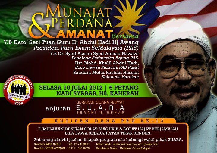Hari ini akan diadakan program bersama Tuan Guru Haji Abdul Hadi Awang , seorang tokoh yang aku sangat hormati, mula kenal beliau ketika menyaksikan sesi parlimen dijalankan apabila beliau membahaskan isu PPSMI, sangat teruja.